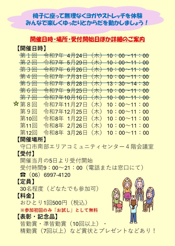 毎月1回、健康的に過ごすために「椅子ヨガ(ゆったりストレッチ)」を開催します。