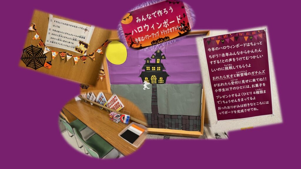 とにかくみんなの折った折り紙で、ハロウィンボードをいっぱいにしてネ🏰
