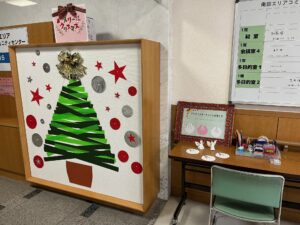 クリスマスツリーに手作りオーナメントを飾るコーナーと🎄
