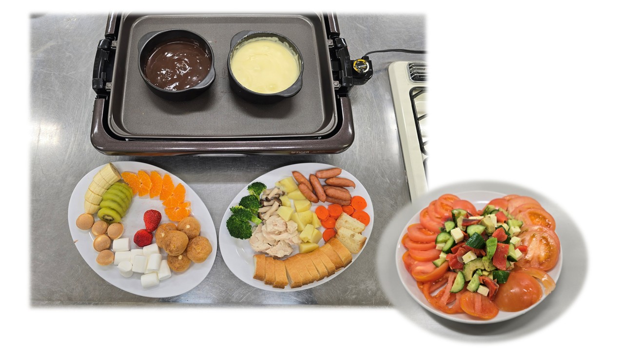 チーズフォンデュ🧀とチョコフォンデュ🍫にパーティーサラダ🥗を作っちゃいました🍳