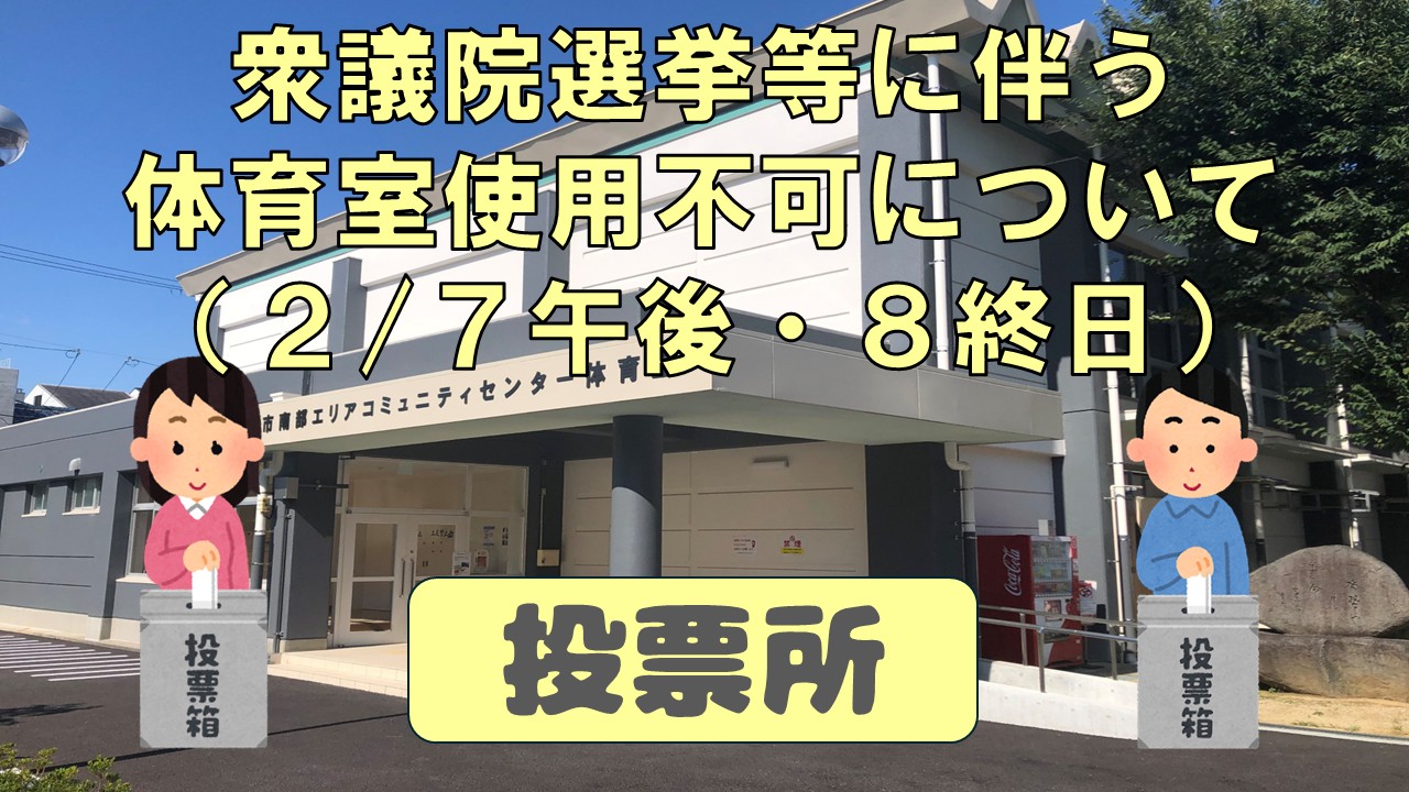 南部エリアコミュニティセンターでも「体育室」が投票所となるので、ご注意くださいね。