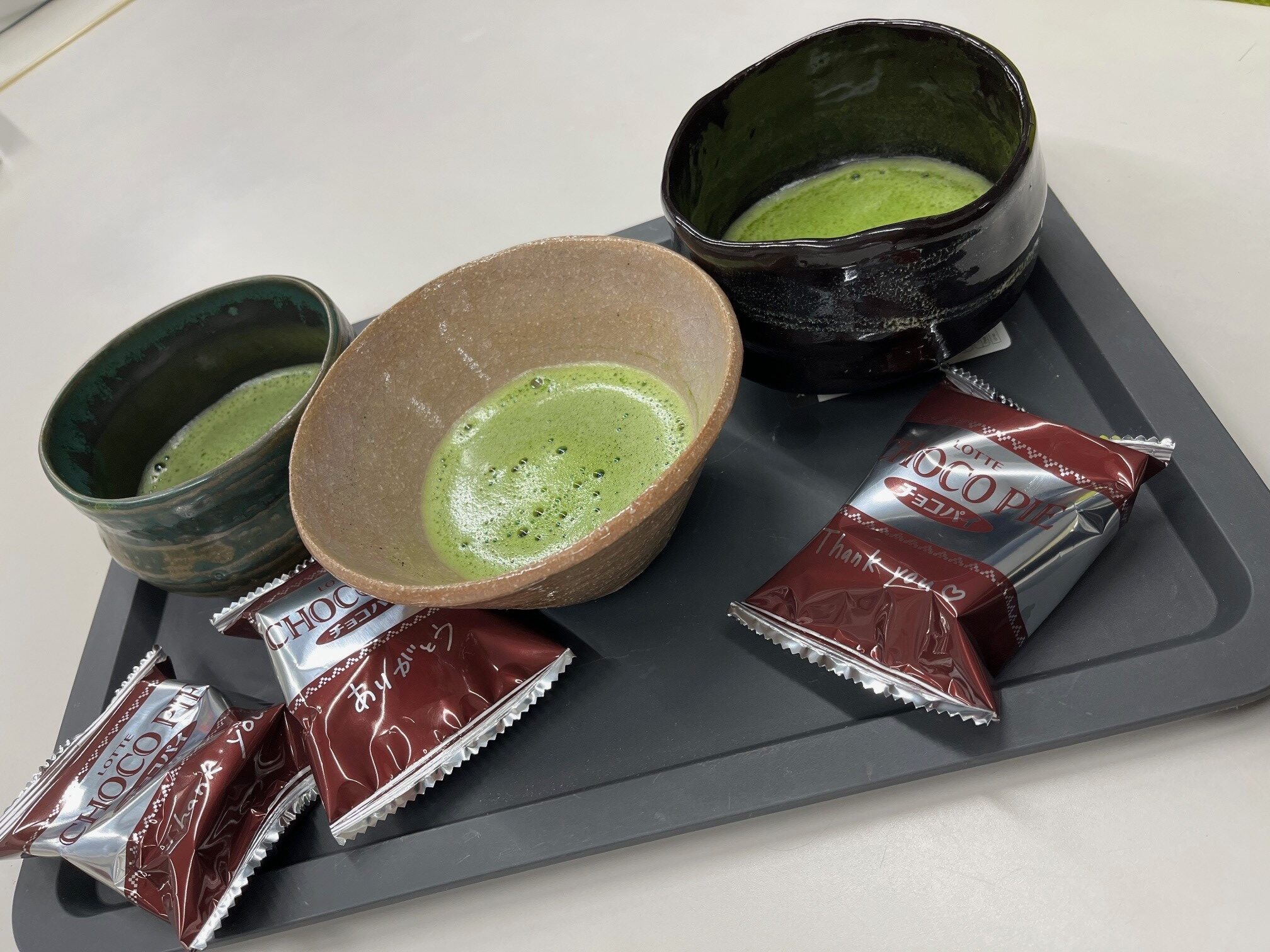 寒い雪の日に、あったかい抹茶とお菓子の差入れをいただきましたぁ~🍵🍩