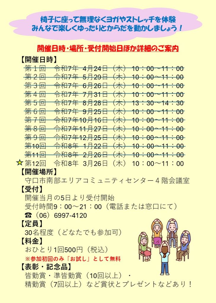 毎月1回、健康的に過ごすために「椅子ヨガ(ゆったりストレッチ)」を開催します。