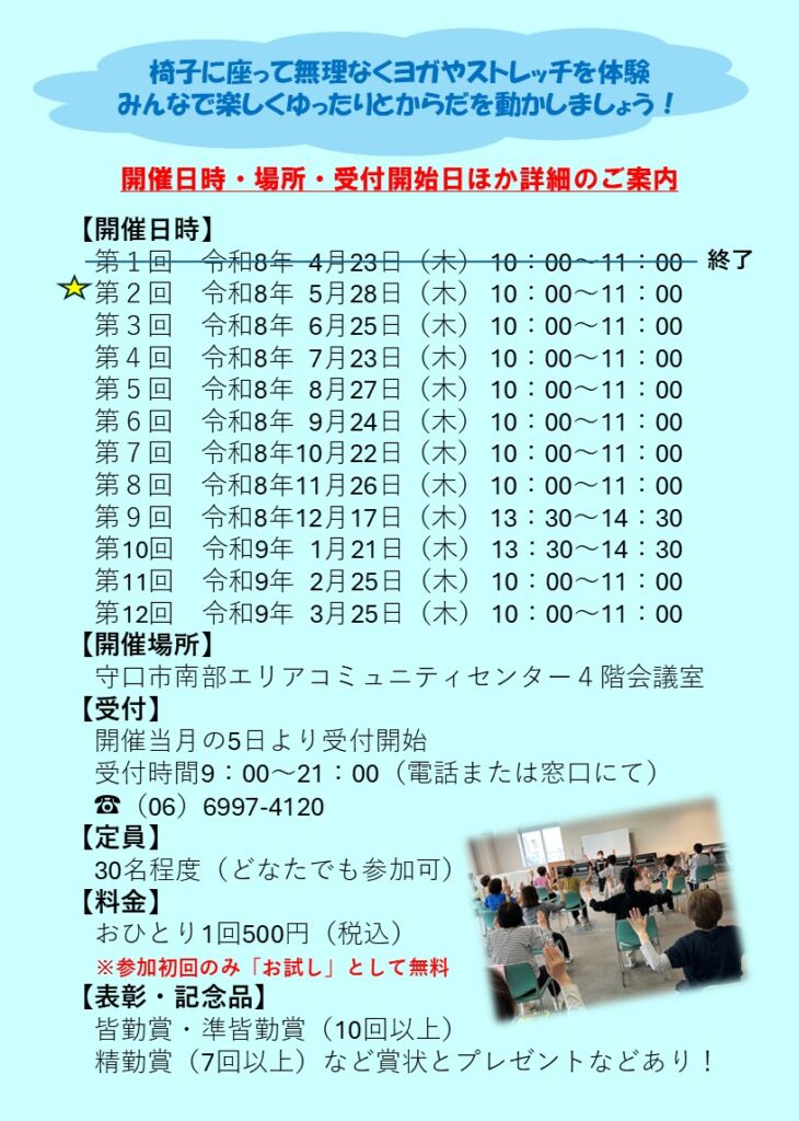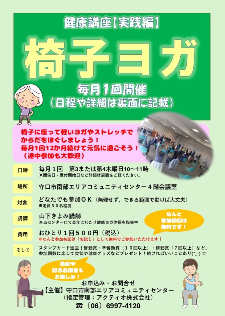 毎月1回、健康的に過ごすために「椅子ヨガ」を一緒にやりましょう!!