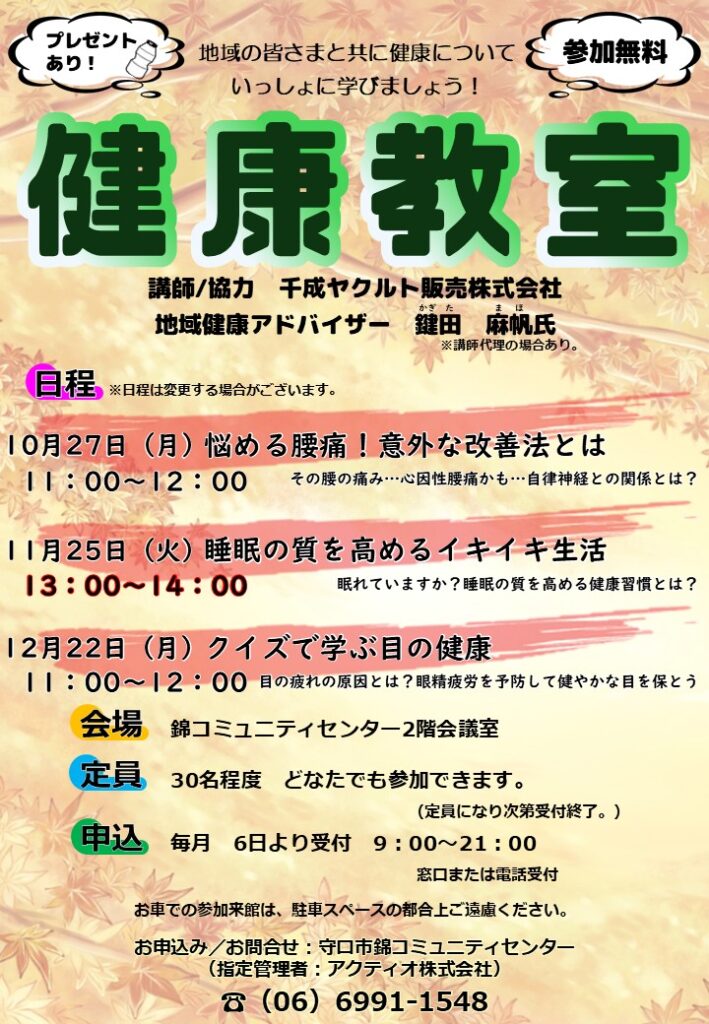 多彩な健康持続法を各月テーマに沿って皆さんといっしょに学びましょう!