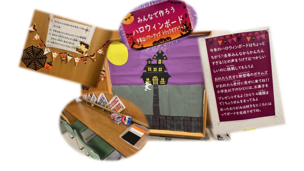 ウェルカムボードにみんなでおり紙のハロウィンキャラをかざろう!!(参加無料) 10/31(金)まで