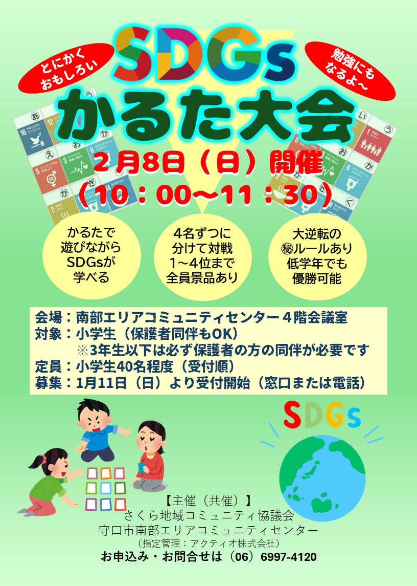 小学生対象の「SDGsかるた大会」を2月8日(日)10時から開催いたします🌎