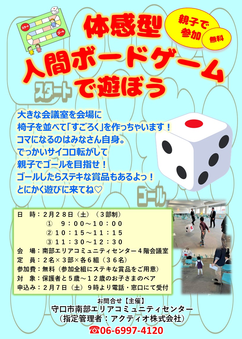毎年大人気の「体感型人間ボードゲーム」が今年も南部コミュセンにやってきたぁ~\(^o^)/