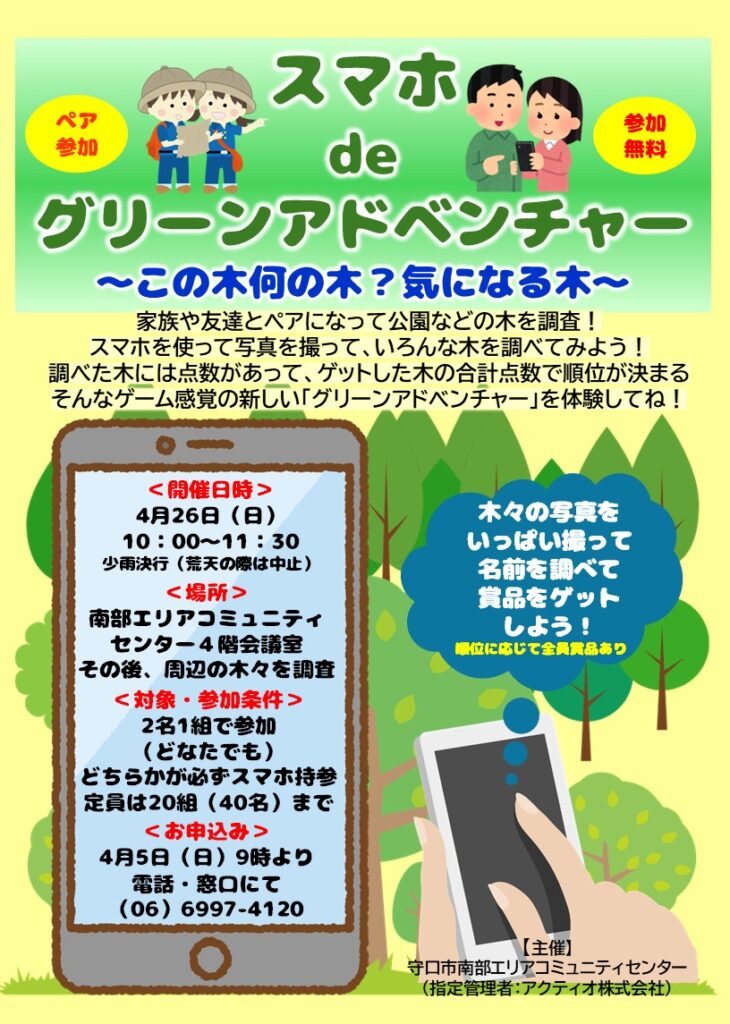 ご家族や友達などとふたり一組になって、スマホで公園などの木々を調査🌳🌳